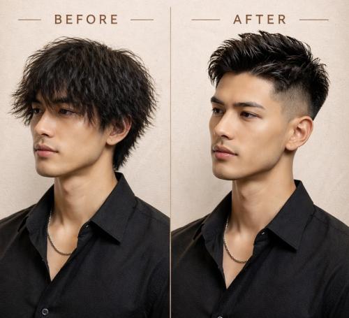 今回のビフォーアフターは、「清潔感」と「骨格補正」をテーマにした王道メンズスタイルの変化をご紹介します。